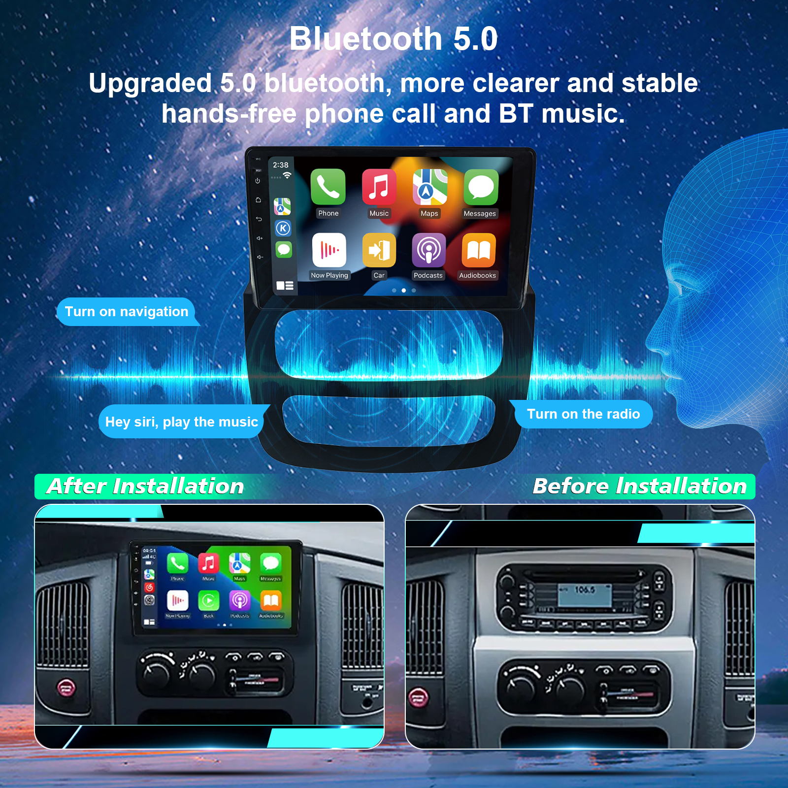 CUSP Dodge RAM 2002-2005 9 Inch HD IPS Screen Android Car Stereo Radio GPS Navigation Multimedia Player Tablet with Car Play and Android Auto, Bluetooth,FM,AM, RDS, GPS, WIFI, DSP, Audio, Video,Google, Youtube, Play Store, Netflix, Support Rear Camera,in Dash Kit