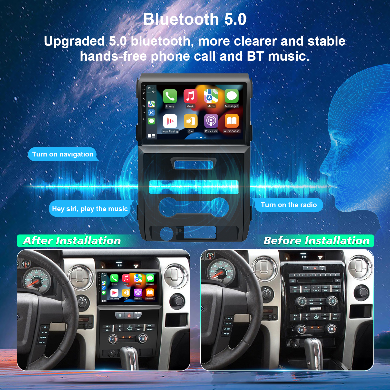 CUSP FORD F150 2009-2014 9 Inch HD IPS Screen Android Car Stereo Radio GPS Navigation Multimedia Player Tablet with Car Play and Android Auto, Bluetooth,FM,AM, RDS, GPS, WIFI, DSP, Audio, Video,Google, Youtube, Play Store, Netflix, Support Rear Camera,in Dash Kit