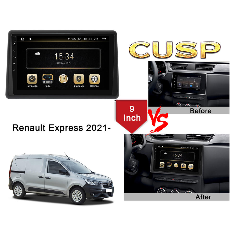 CUSP Renault Express 2021- 9 Inch HD IPS Screen Android Car Stereo Radio GPS Navigation Multimedia Player Tablet with Car Play and Android Auto, Bluetooth,FM,AM, RDS, GPS, WIFI, DSP, Audio, Video,Google, Youtube, Play Store, Netflix, Support Rear Camera,in Dash Kit