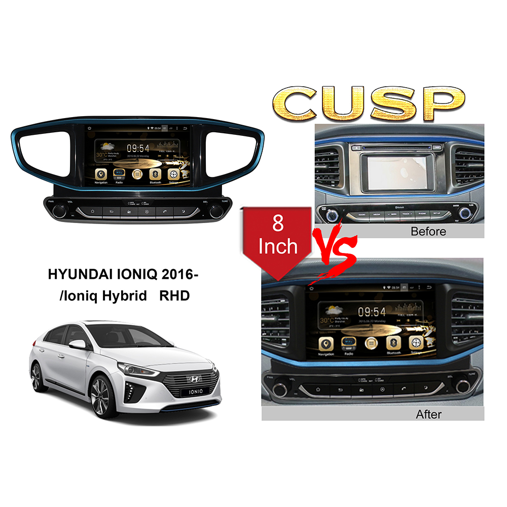 CUSP HYUNDAI IONIQ 2016- /Ioniq Hybrid 8 Inch HD IPS Screen Android Car DVD Stereo Radio GPS Navigation Multimedia Player Tablet with Car Play and Android Auto, Bluetooth,FM,AM, RDS, GPS, WIFI, DSP, Audio, Video,Google, Youtube, Play Store, Netflix, Support Rear Camera,in Dash Kit