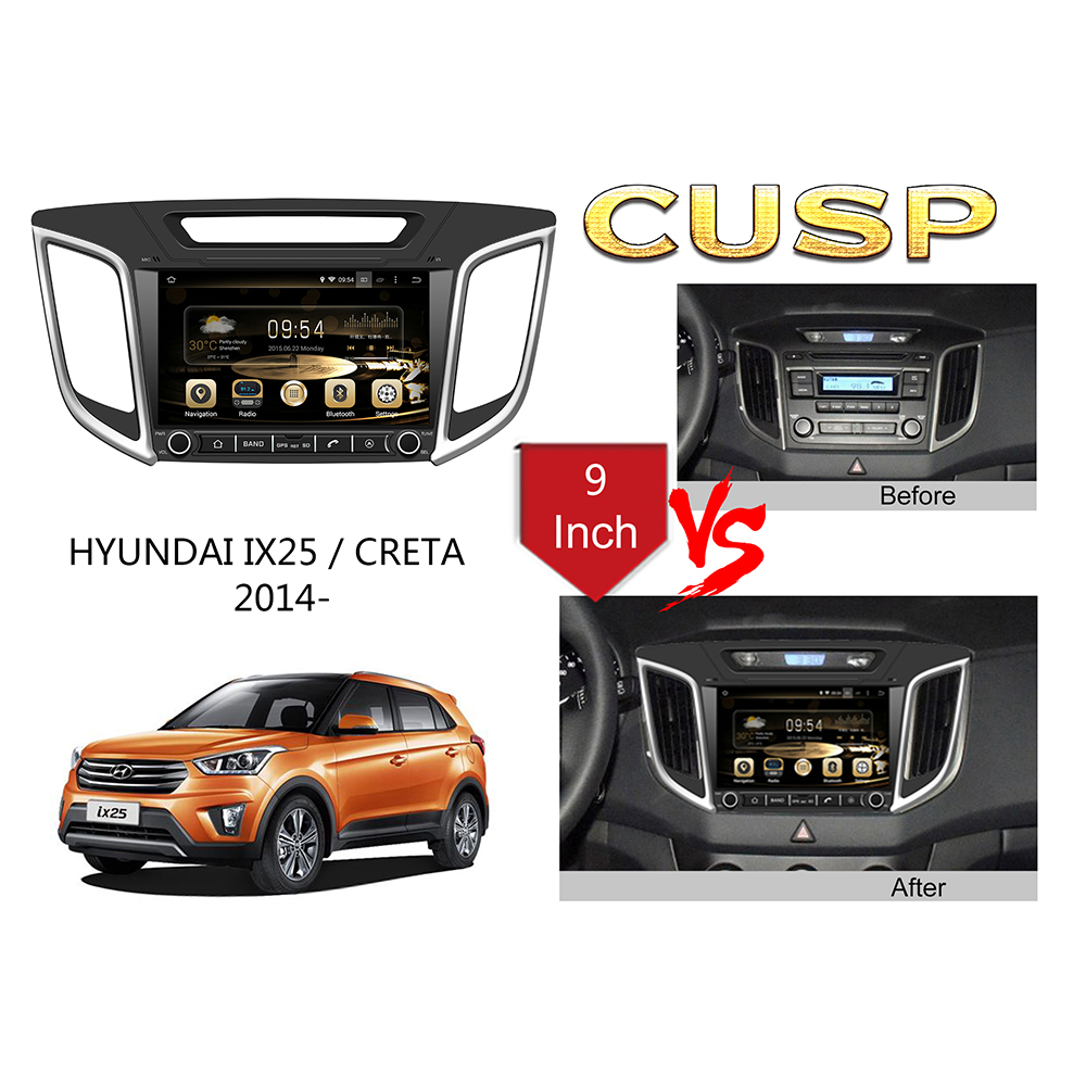 CUSP HYUNDAI IX25 / CRETA 2014- 9 Inch HD IPS Screen Android Car DVD Stereo Radio GPS Navigation Multimedia Player Tablet with Car Play and Android Auto, Bluetooth,FM,AM, RDS, GPS, WIFI, DSP, Audio, Video,Google, Youtube, Play Store, Netflix, Support Rear Camera,in Dash Kit