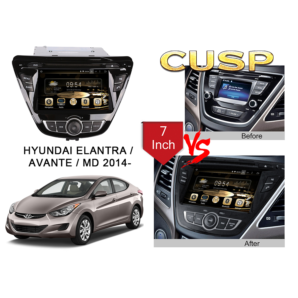 CUSP HYUNDAI ELANTRA / AVANTE / MD 2014- 7 Inch HD IPS Screen Android Car DVD Stereo Radio GPS Navigation Multimedia Player Tablet with Car Play and Android Auto, Bluetooth,FM,AM, RDS, GPS, WIFI, DSP, Audio, Video,Google, Youtube, Play Store, Netflix, Support Rear Camera,in Dash Kit