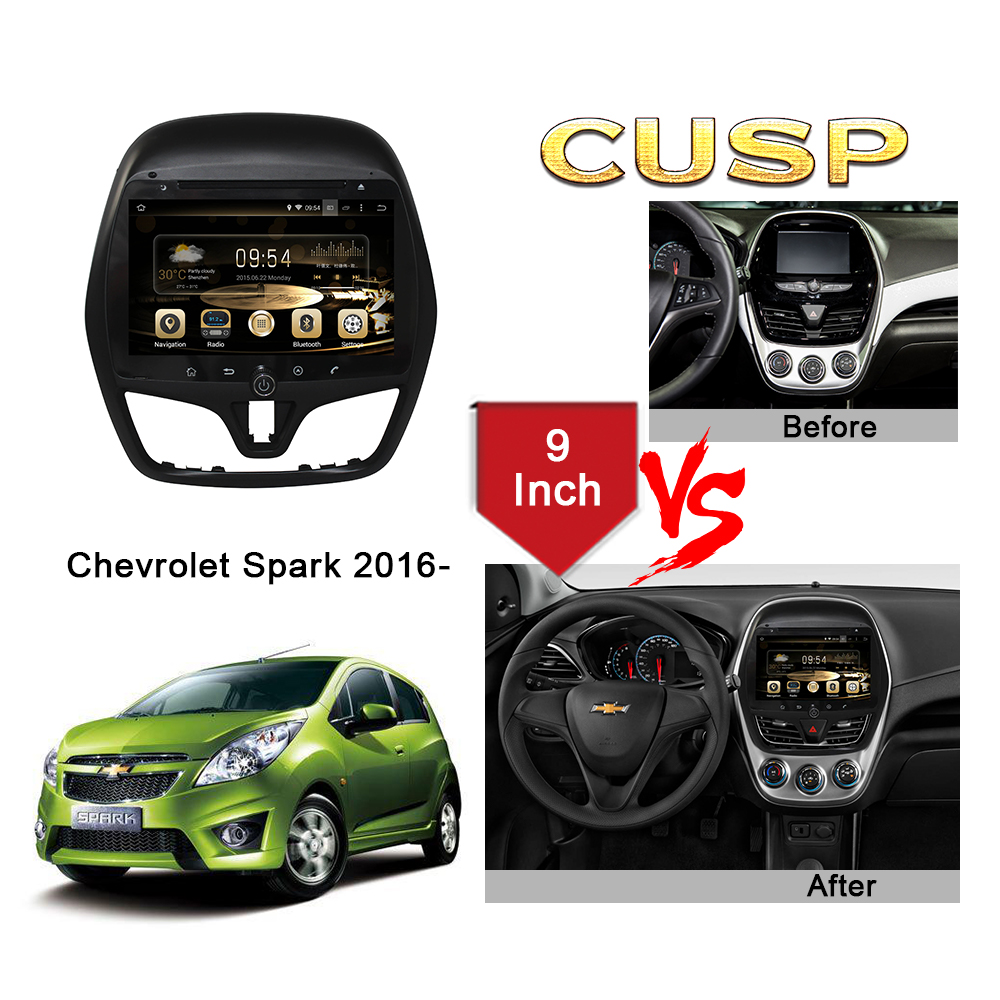 CUSP Chevrolet Spark 2016- 9 Inch HD IPS Screen Android Car DVD Stereo Radio GPS Navigation Multimedia Player Tablet with Car Play and Android Auto, Bluetooth,FM,AM, RDS, GPS, WIFI, DSP, Audio, Video,Google, Youtube, Play Store, Netflix, Support Rear Camera,in Dash Kit