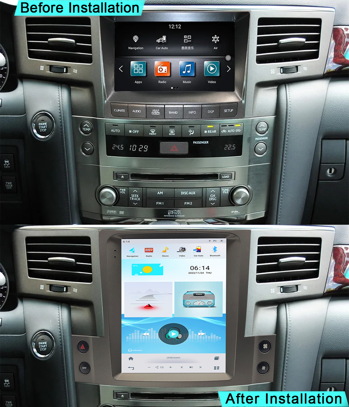 CUSP LEXUS LX570 2007-2015 10.4 Inch HD IPS Screen Android Car Stereo Radio GPS Navigation Multimedia Player Tablet Tesla Style Vertical Screen with Car Play and Android Auto, Bluetooth,FM,AM, RDS, GPS, WIFI, DSP, Audio, Video,Google, Youtube, Play Store, Netflix, Support Rear Camera,in Dash Kit