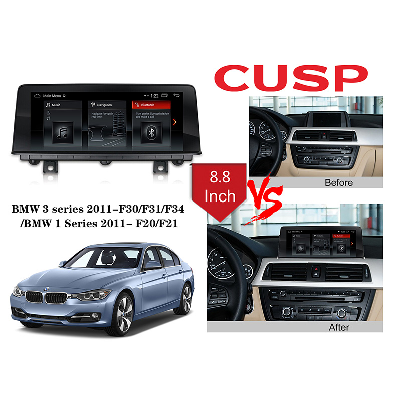 CUSP BMW 3 series 2013-2016 F30/F31/F34 /BMW 1 Series 2011-2016 F20/F21 NBT 8.8 Inch HD IPS Screen Android Car Stereo Radio GPS Navigation Multimedia Player Tablet with Car Play and Android Auto, Bluetooth,FM,AM, RDS, GPS, WIFI, DSP, Audio, Video,Google, Youtube, Play Store, Netflix, Support Rear Camera,in Dash Kit