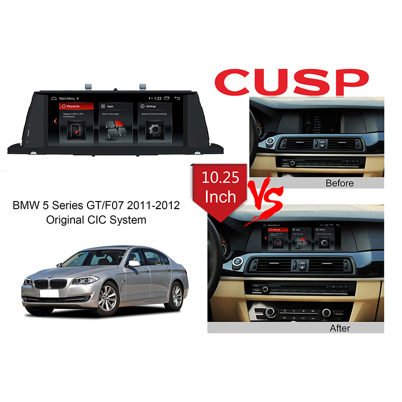 CUSP BMW 5 Series GT/F07 2011–2012 Original CIC System 2013-2017 Original NBT System 10.25 Inch HD IPS Screen Android Car Stereo Radio GPS Navigation Multimedia Player Tablet with Car Play and Android Auto, Bluetooth,FM,AM, RDS, GPS, WIFI, DSP, Audio, Video,Google, Youtube, Play Store, Netflix, Support Rear Camera,in Dash Kit