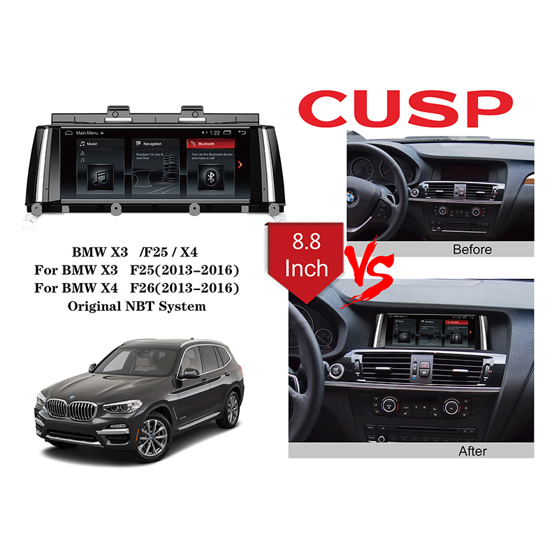 CUSP BMW X3 /F25 / X4 BMW X3 F25(2011-2013) Original CIC System 8.8 Inch HD IPS Screen Android Car Stereo Radio GPS Navigation Multimedia Player Tablet with Car Play and Android Auto, Bluetooth,FM,AM, RDS, GPS, WIFI, DSP, Audio, Video,Google, Youtube, Play Store, Netflix, Support Rear Camera,in Dash Kit