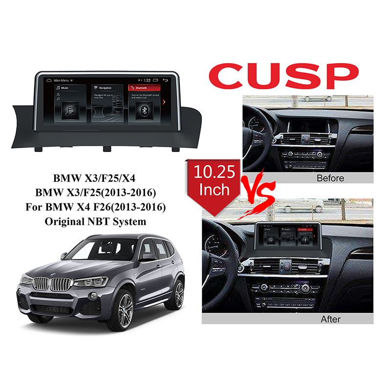 CUSP BMW X3 /F25 /X4 For BMW X3 F25(2013-2016)For BMW X4 F26 (2013-2016) Original NBT System 10.25 Inch HD IPS Screen Android Car Stereo Radio GPS Navigation Multimedia Player Tablet with Car Play and Android Auto, Bluetooth,FM,AM, RDS, GPS, WIFI, DSP, Audio, Video,Google, Youtube, Play Store, Netflix, Support Rear Camera,in Dash Kit