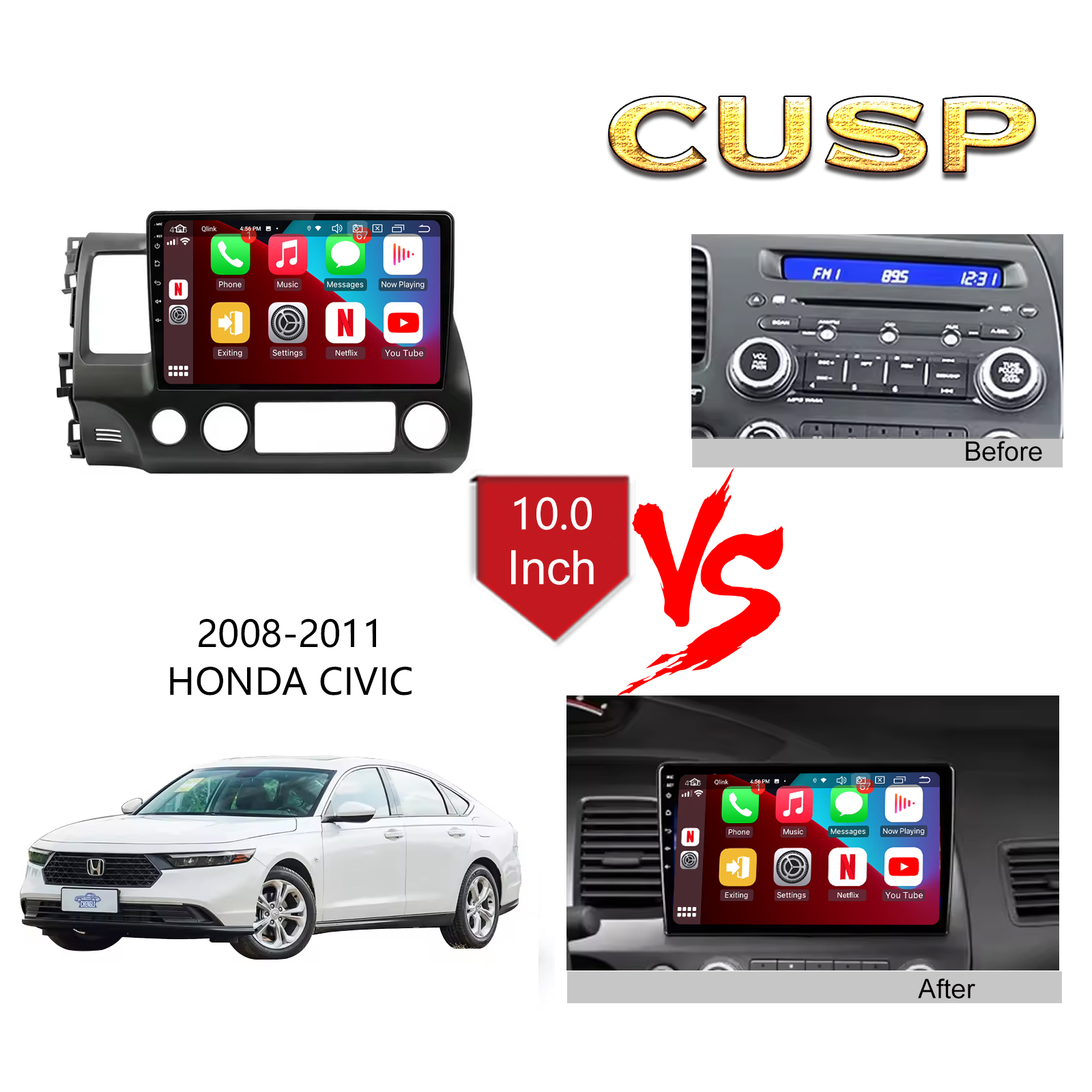 CUSP HONDA CITY 2008-2011 LHD 10.1 Inch HD IPS Screen Android Car Stereo Radio GPS Navigation Multimedia Player Tablet with Car Play and Android Auto, Bluetooth,FM,AM, RDS, GPS, WIFI, DSP, Audio, Video,Google, Youtube, Play Store, Netflix, Support Rear Camera,in Dash Kit