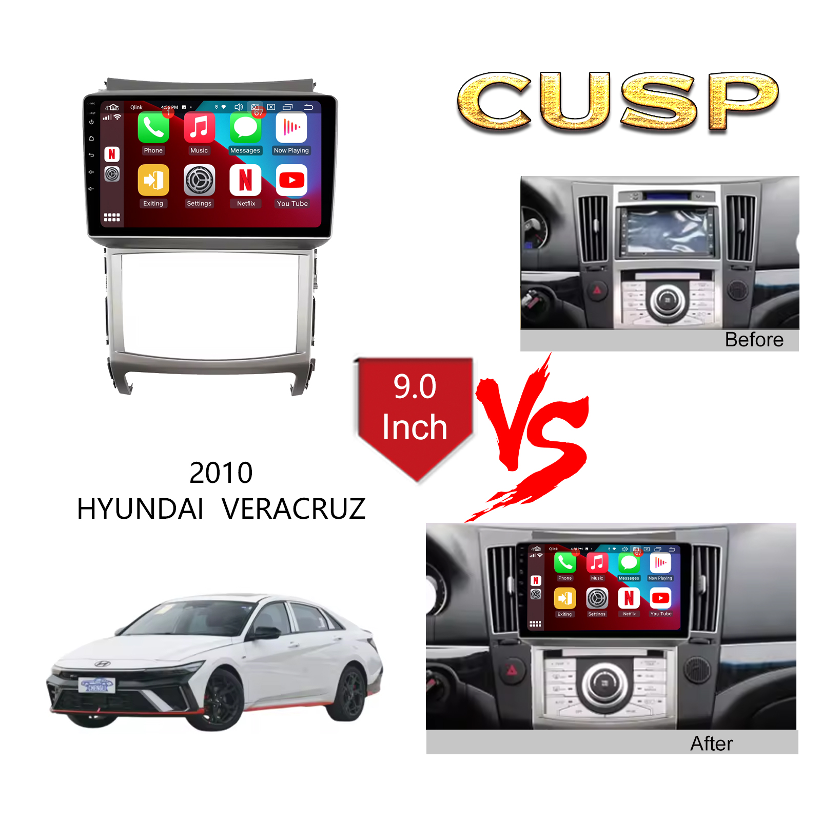 CUSP HYUNDAI VERACRUZ 2010 AUTO AC 9 Inch HD IPS Screen Android Car Stereo Radio GPS Navigation Multimedia Player Tablet with Car Play and Android Auto,Bluetooth,FM,AM, RDS, GPS, WIFI, DSP, Audio