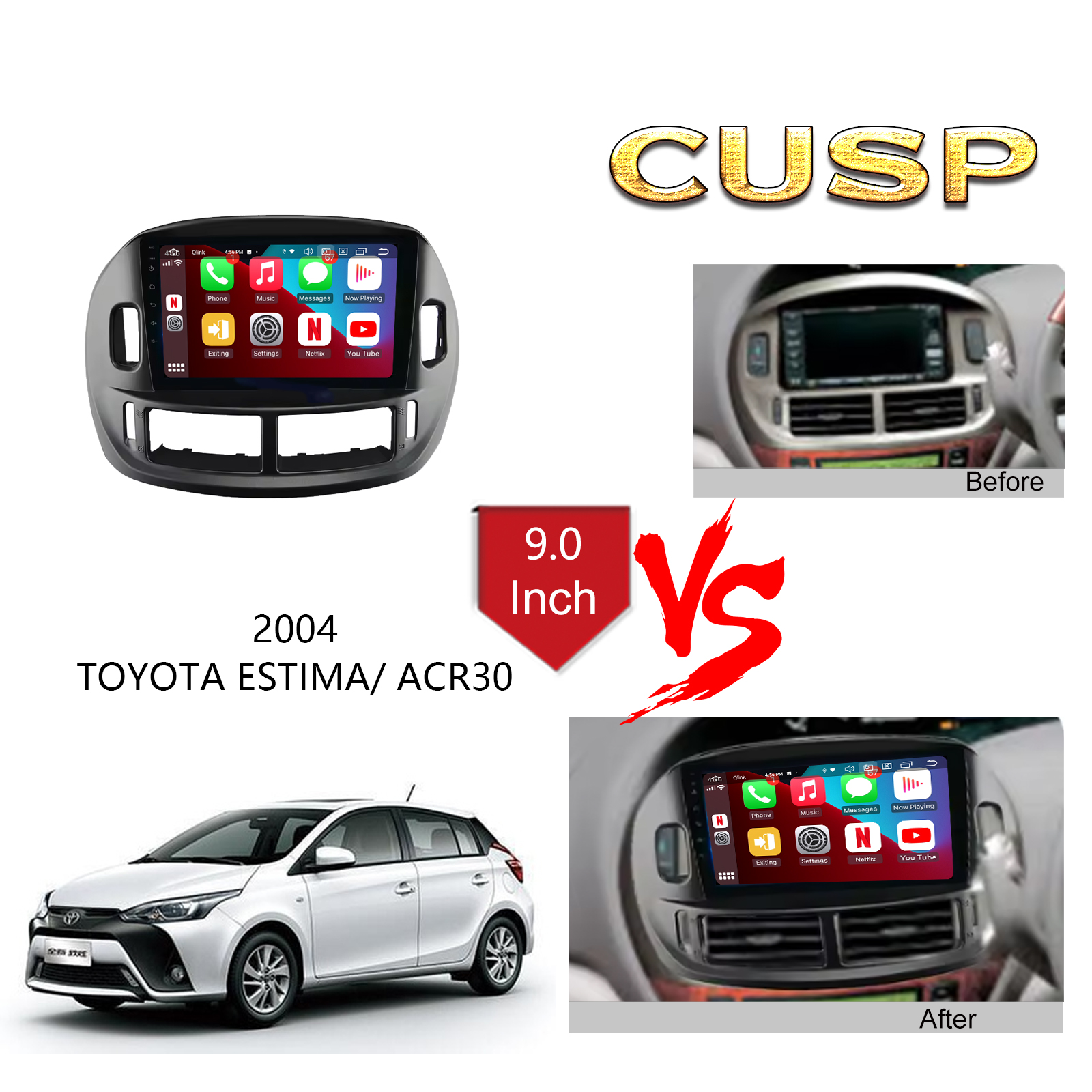 CUSP TOYOTA ESTIMA/ ACR30 2004 RHD 9 Inch HD IPS Screen Android Car Stereo Radio GPS Navigation Multimedia Player Tablet with Car Play and Android Auto, Bluetooth,FM,AM, RDS, GPS, WIFI, DSP, Audio, Video,Google, Youtube, Play Store, Netflix, Support Rear Camera,in Dash Kit