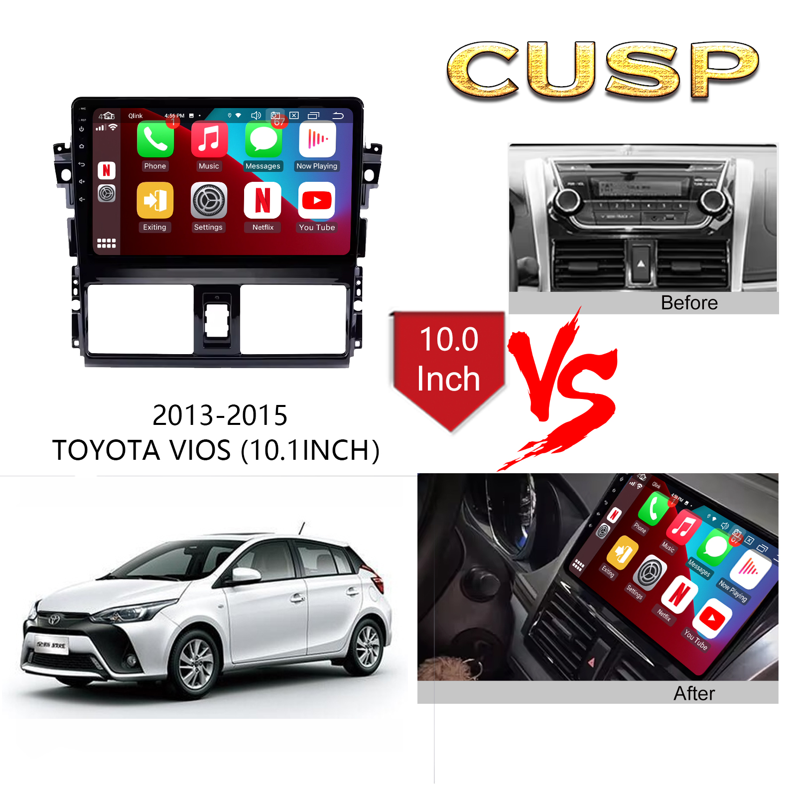 CUSP TOYOTA VIOS 2013-2015 10.1 Inch HD IPS Screen Android Car Stereo Radio GPS Navigation Multimedia Player Tablet with Car Play and Android Auto, Bluetooth,FM,AM, RDS, GPS, WIFI, DSP, Audio, Video,Google, Youtube, Play Store, Netflix, Support Rear Camera,in Dash Kit