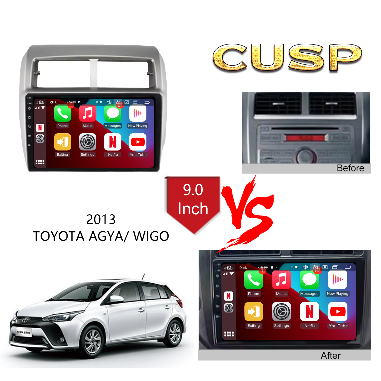 CUSP TOYOTA AGYA/ WIGO 2013 9 Inch HD IPS Screen Android Car Stereo Radio GPS Navigation Multimedia Player Tablet with Car Play and Android Auto, Bluetooth,FM,AM, RDS, GPS, WIFI, DSP, Audio, Video,Google, Youtube, Play Store, Netflix, Support Rear Camera,in Dash Kit