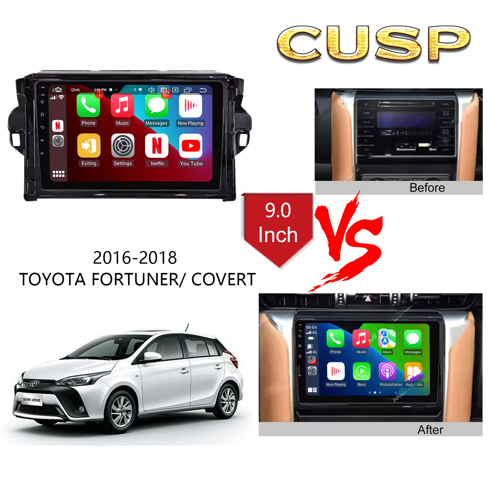 CUSP TOYOTA FORTUNER/ COVERT 2016-2018 9 Inch HD IPS Screen Android Car Stereo Radio GPS Navigation Multimedia Player Tablet with Car Play and Android Auto, Bluetooth,FM,AM, RDS, GPS, WIFI, DSP, Audio, Video,Google, Youtube, Play Store, Netflix, Support Rear Camera,in Dash Kit