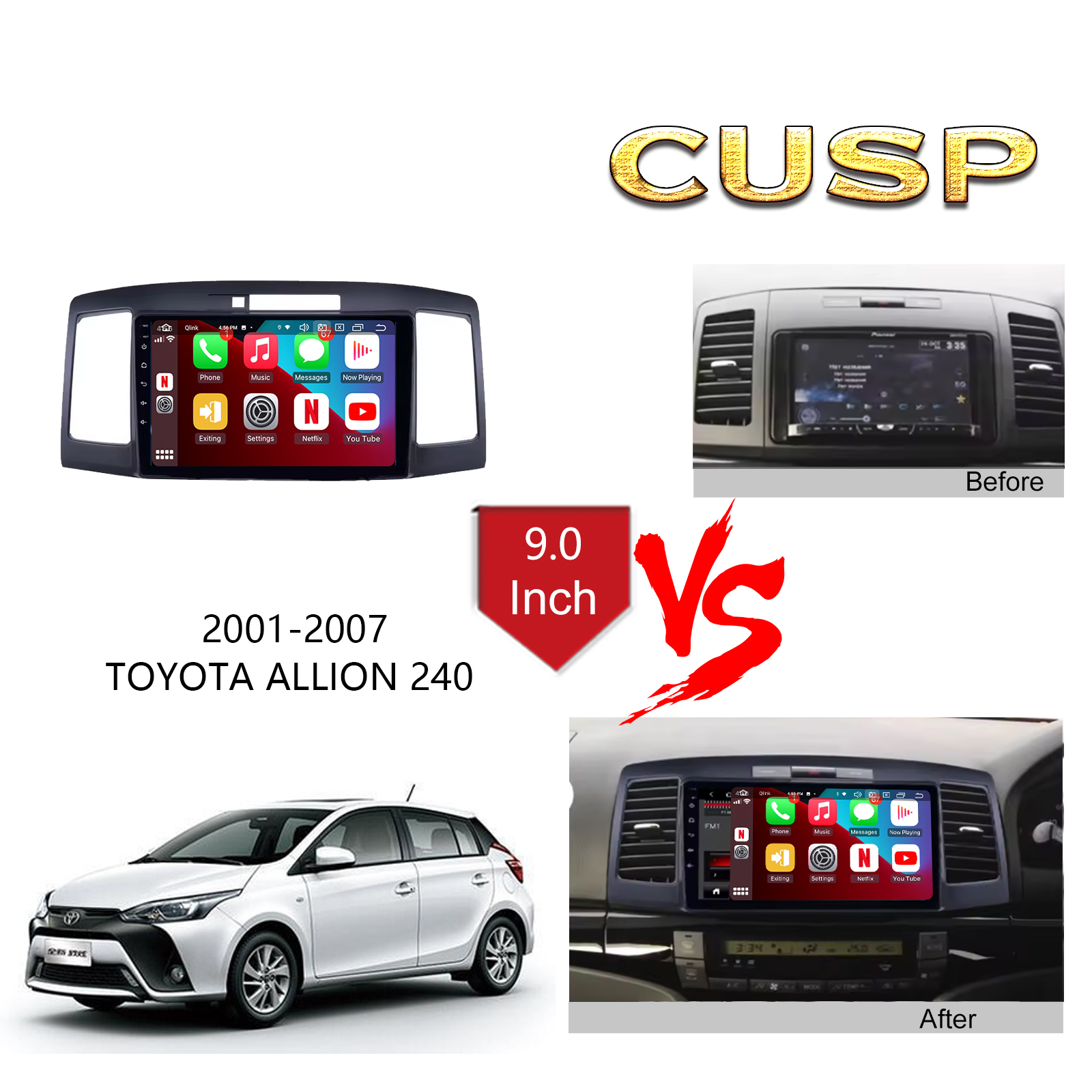 CUSP TOYOTA ALLION 240 2001-2007 9 Inch HD IPS Screen Android Car Stereo Radio GPS Navigation Multimedia Player Tablet with Car Play and Android Auto, Bluetooth,FM,AM, RDS, GPS, WIFI, DSP, Audio, Video,Google, Youtube, Play Store, Netflix, Support Rear Camera,in Dash Kit