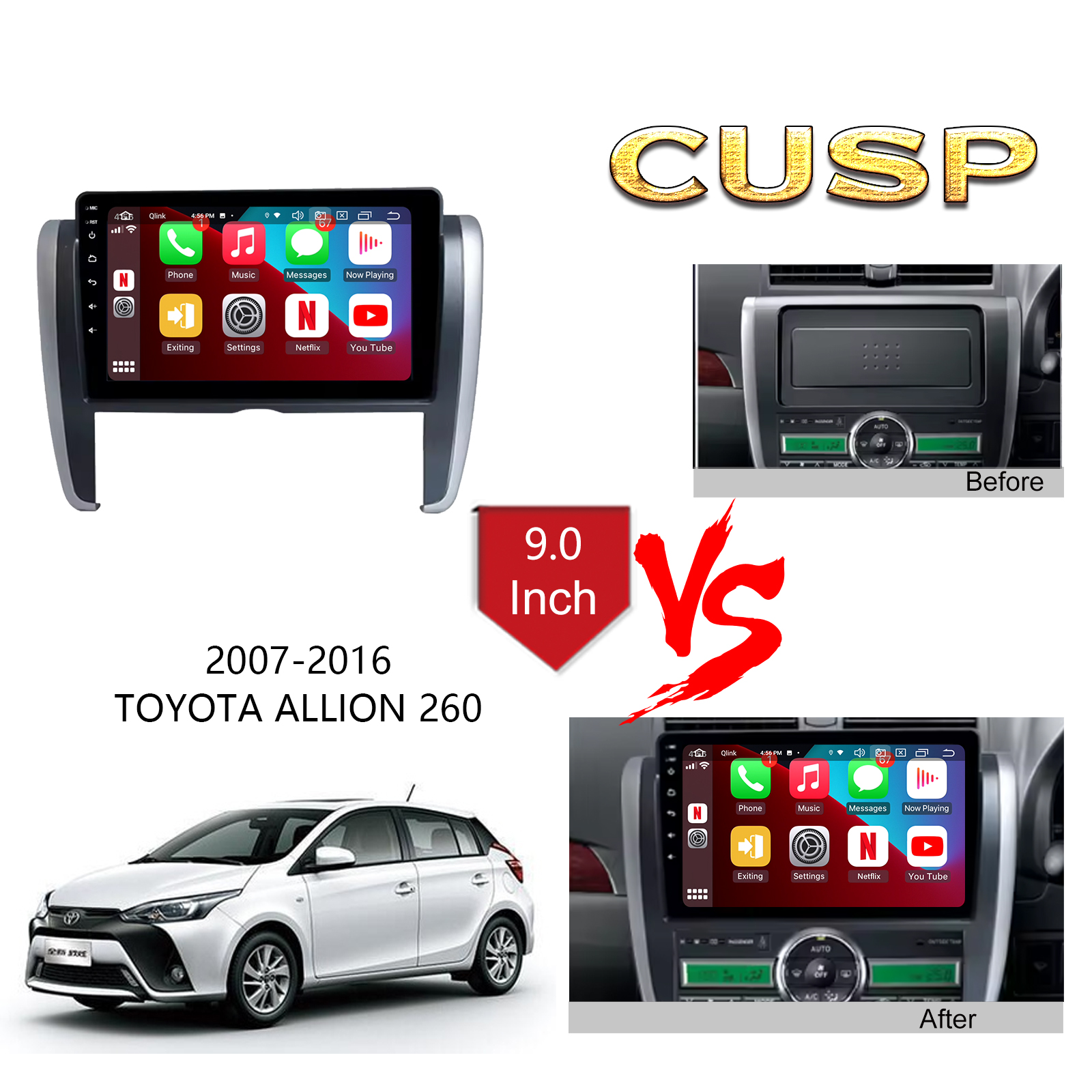 CUSP TOYOTA ALLION 260 2007-2016 9 Inch HD IPS Screen Android Car Stereo Radio GPS Navigation Multimedia Player Tablet with Car Play and Android Auto, Bluetooth,FM,AM, RDS, GPS, WIFI, DSP, Audio, Video,Google, Youtube, Play Store, Netflix, Support Rear Camera,in Dash Kit