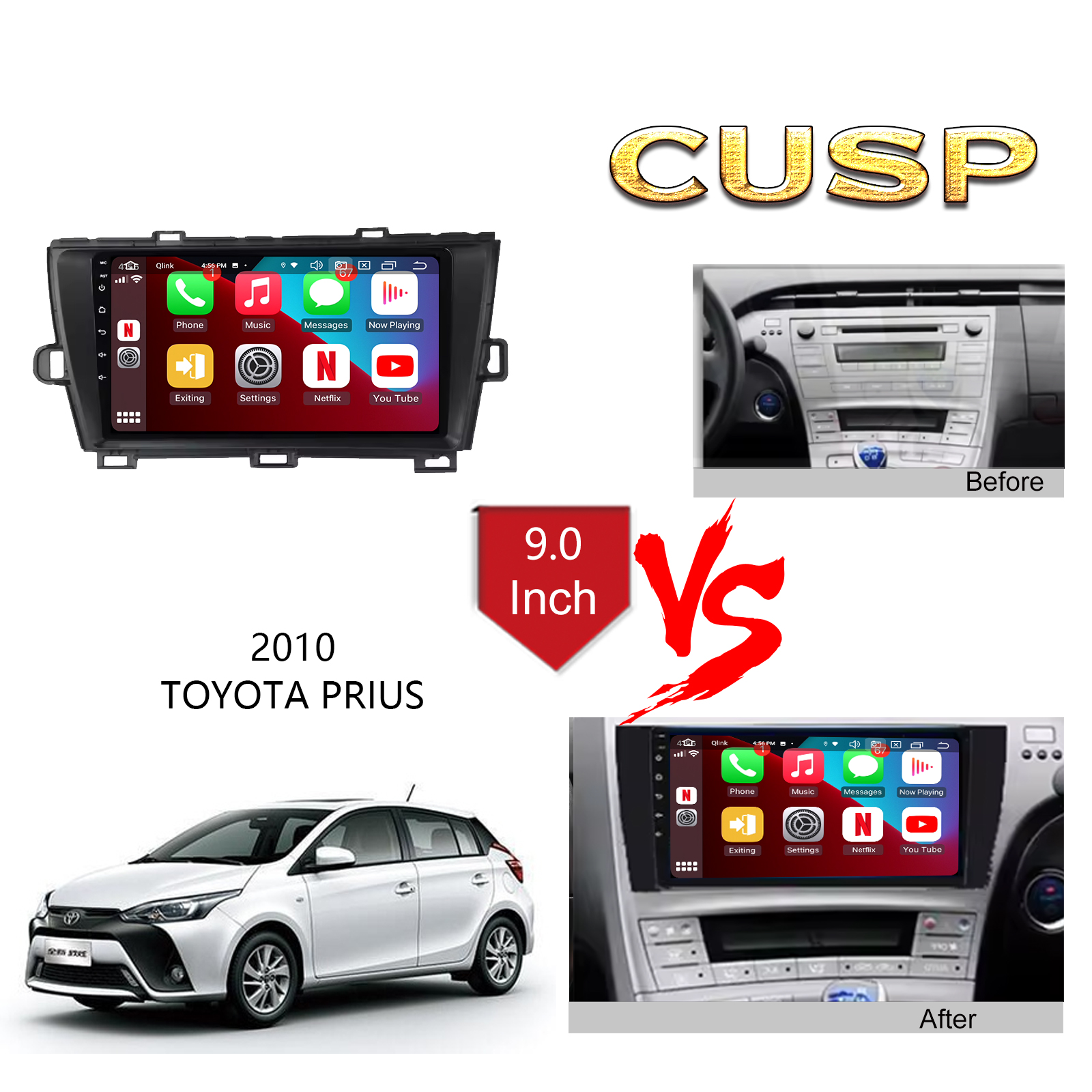 CUSP TOYOTA PRIUS 2010 9 Inch HD IPS Screen Android Car Stereo Radio GPS Navigation Multimedia Player Tablet with Car Play and Android Auto, Bluetooth,FM,AM, RDS, GPS, WIFI, DSP, Audio, Video,Google, Youtube, Play Store, Netflix, Support Rear Camera,in Dash Kit