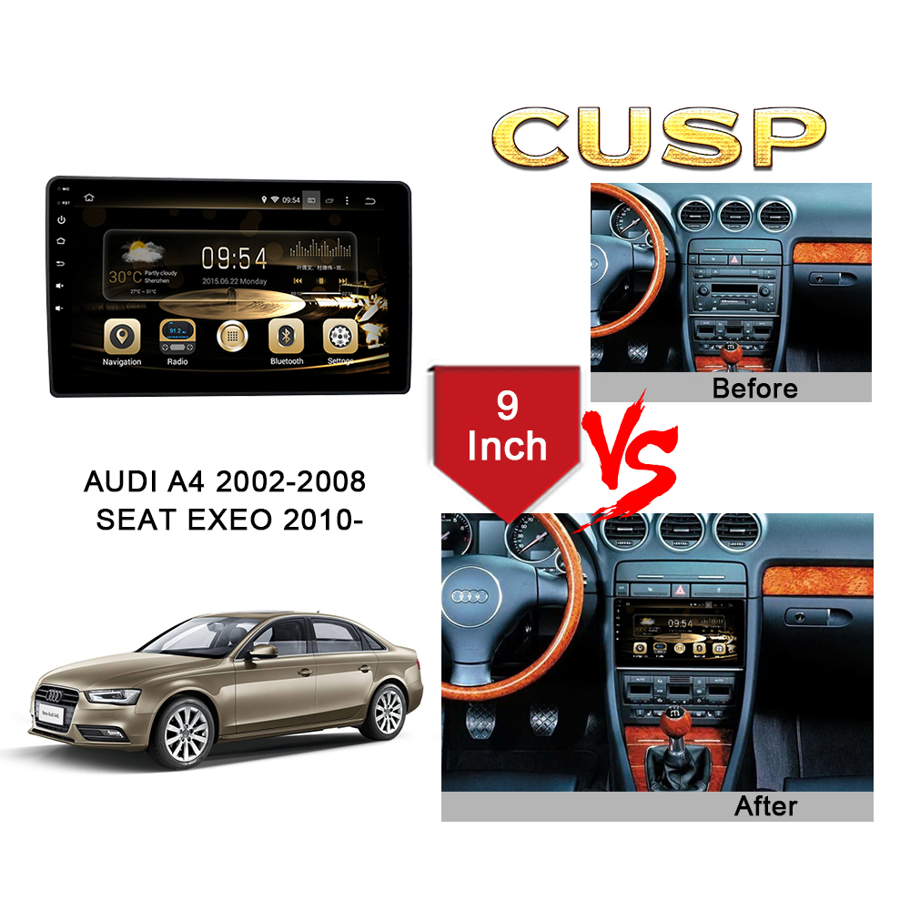 CUSP AUDI A4 2002-2008/SEAT EXEO 2010- 9 Inch HD IPS Screen Android Car Stereo Radio GPS Navigation Multimedia Player Tablet Tesla Style Vertical Screen with Car Play and Android Auto, Bluetooth,FM,AM, RDS, GPS, WIFI, DSP, Audio, Video,Google, Youtube, Play Store, Netflix, Support Rear Camera,in Dash Kit