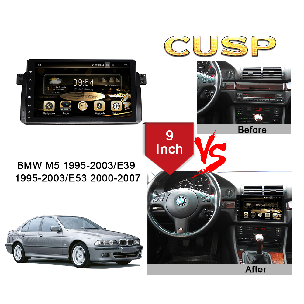 CUSP BMW M5 1995-2003/E39 1995-2003/E53 2000-2007 9 Inch HD IPS Screen Android Car Stereo Radio GPS Navigation Multimedia Player Tablet with Car Play and Android Auto, Bluetooth,FM,AM, RDS, GPS, WIFI, DSP, Audio, Video,Google, Youtube, Play Store, Netflix, Support Rear Camera,in Dash Kit