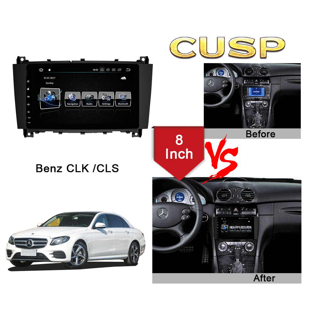 CUSP Benz CLK 1998-2009 /CLS 2006-2016 8 Inch HD IPS Screen Android Car Stereo Radio GPS Navigation Multimedia Player Tablet with Car Play and Android Auto, Bluetooth,FM,AM, RDS, GPS, WIFI, DSP, Audio, Video,Google, Youtube, Play Store, Netflix, Support Rear Camera,in Dash Kit