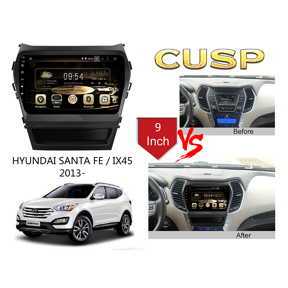 CUSP Hyundai santa fe / ix45 2013- 9 Inch HD IPS Screen Android Car Stereo Radio GPS Navigation Multimedia Player Tablet with Car Play and Android Auto, Bluetooth,FM,AM, RDS, GPS, WIFI, DSP, Audio, Video,Google, Youtube, Play Store, Netflix, Support Rear Camera,in Dash Kit