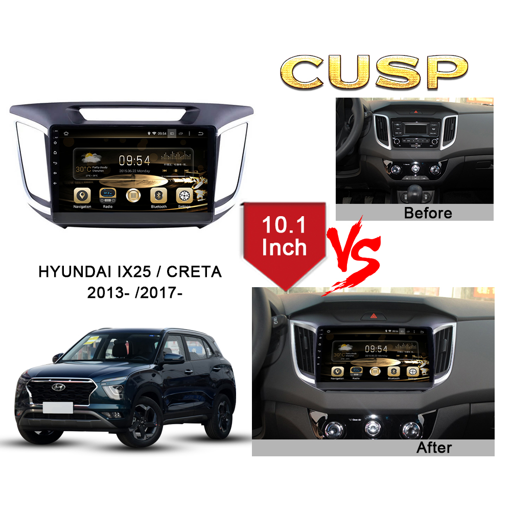 CUSP HYUNDAI IX25 / CRETA 2013- /2017- 10.1 Inch HD IPS Screen Android Car Stereo Radio GPS Navigation Multimedia Player Tablet with Car Play and Android Auto, Bluetooth,FM,AM, RDS, GPS, WIFI, DSP, Audio, Video,Google, Youtube, Play Store, Netflix, Support Rear Camera,in Dash Kit
