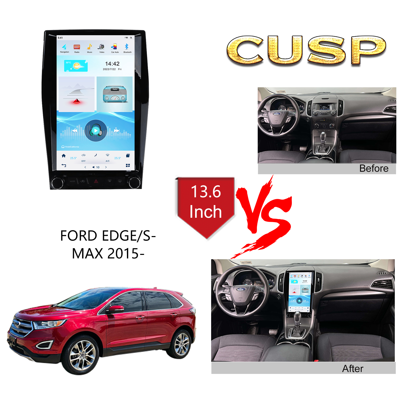 CUSP FORD EDGE / S-Max 2015- MANUAL A/C 13.6 Inch HD IPS Screen Android Car Stereo Radio GPS Navigation Multimedia Player Tablet Tesla Style Vertical Screen with Car Play and Android Auto, Bluetooth,FM,AM, RDS, GPS, WIFI, DSP, Audio, Video,Google, Youtube, Play Store, Netflix, Support Rear Camera,in Dash Kit