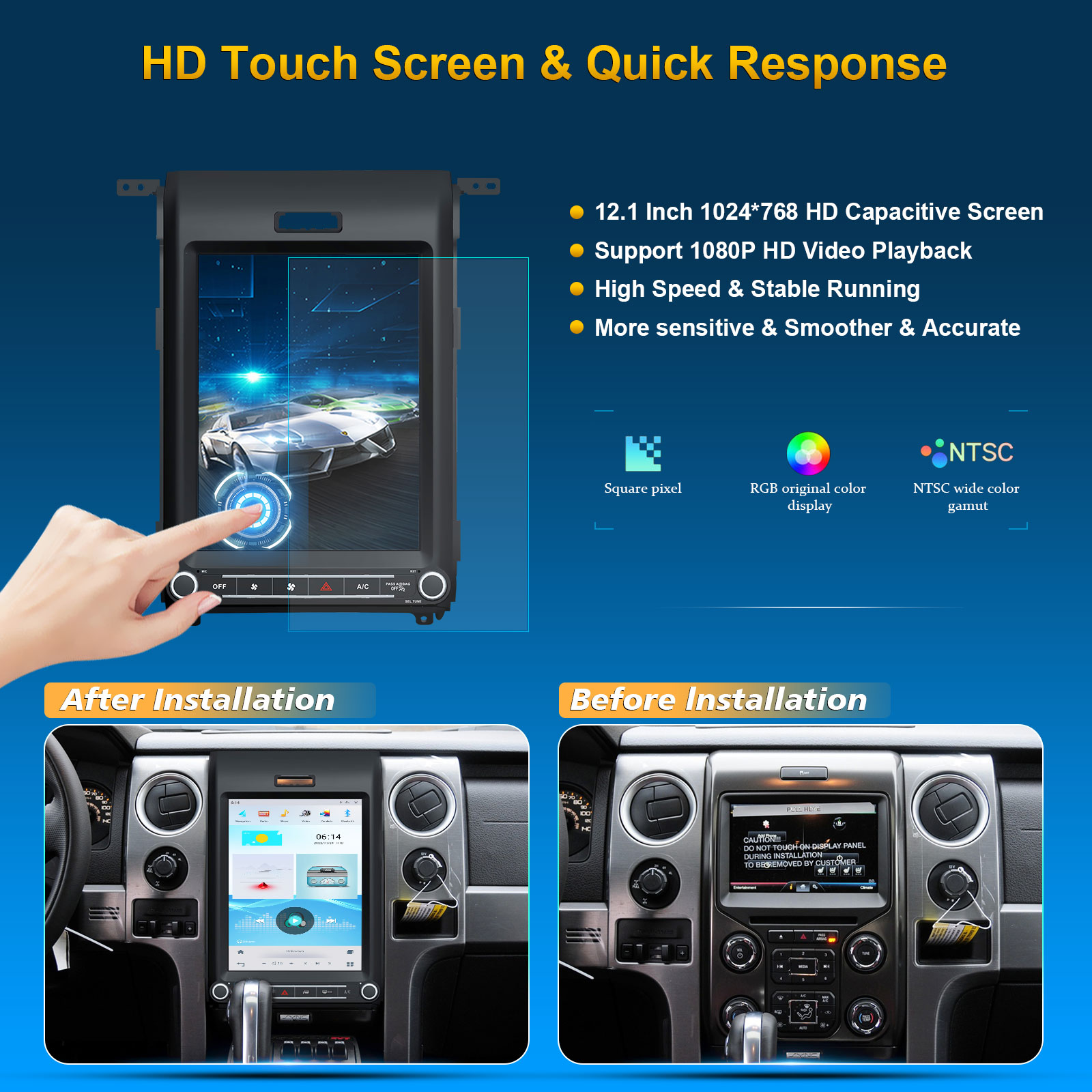 CUSP FORD F150 2013-2015 Manual A/C and Auto A/C 12.1 Inch HD IPS Screen Android Car Stereo Radio GPS Navigation Multimedia Player Tablet Tesla Style Vertical Screen with Car Play and Android Auto, Bluetooth,FM,AM, RDS, GPS, WIFI, DSP, Audio, Video,Google, Youtube, Play Store, Netflix, Support Rear Camera,in Dash Kit