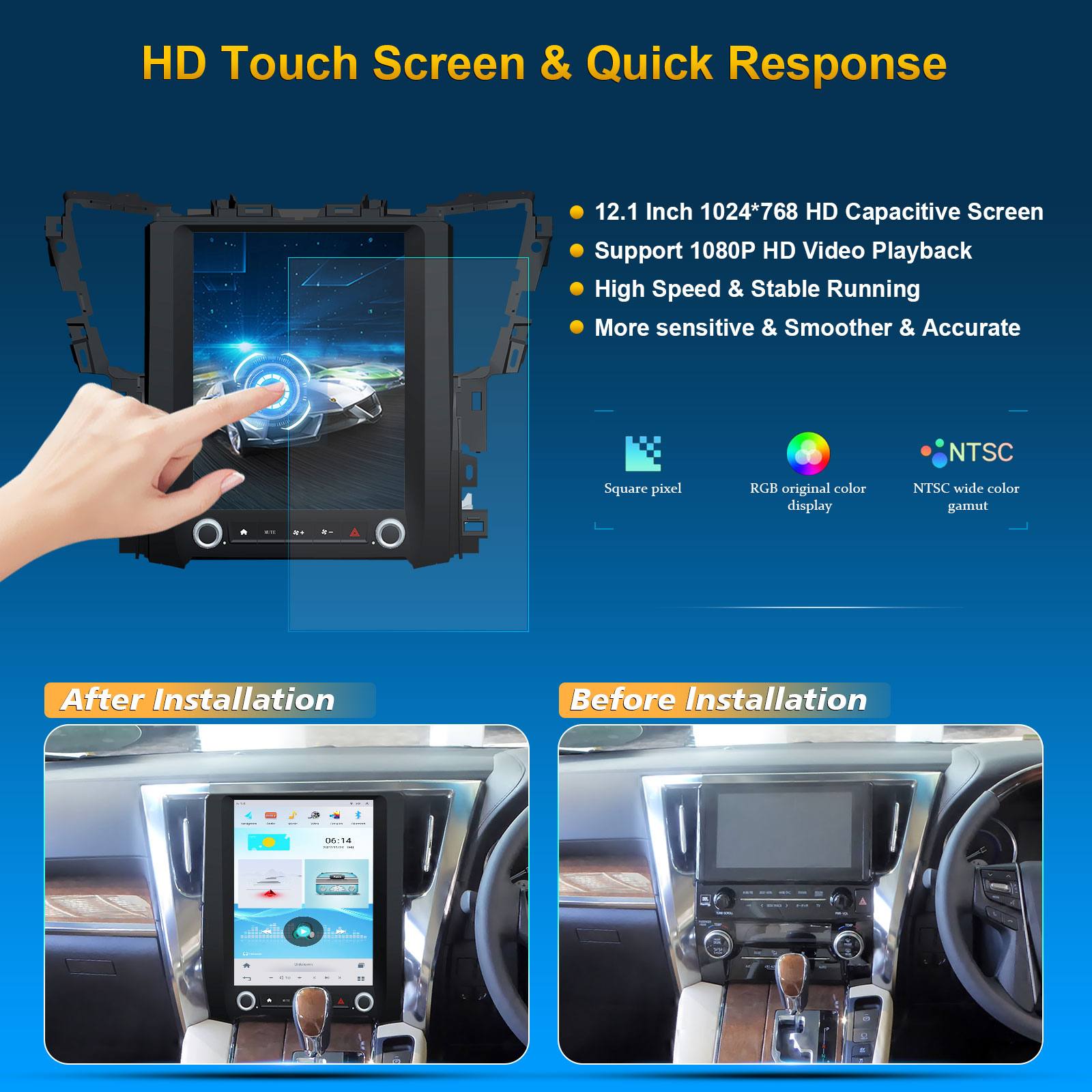 CUSP TOYOTA Alphard 2015- AH30 12.1 Inch HD IPS Screen Android Car Stereo Radio GPS Navigation Multimedia Player Tablet Tesla Style Vertical Screen with Car Play and Android Auto, Bluetooth,FM,AM, RDS, GPS, WIFI, DSP, Audio, Video,Google, Youtube, Play Store, Netflix, Support Rear Camera,in Dash Kit
