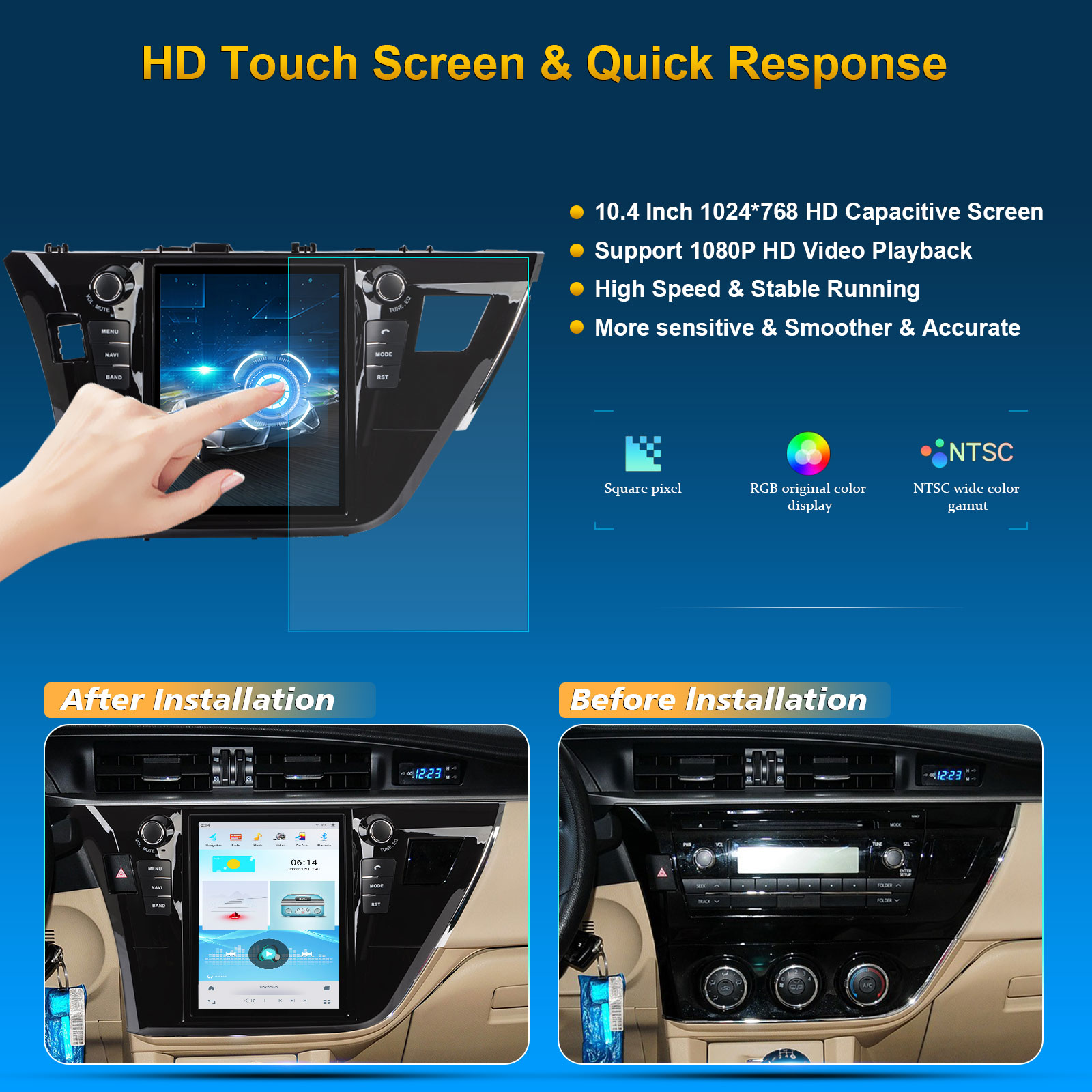CUSP TOYOTA COROLLA 2013- For China 10.4 Inch HD IPS Screen Android Car Stereo Radio GPS Navigation Multimedia Player Tablet Tesla Style Vertical Screen with Car Play and Android Auto, Bluetooth,FM,AM, RDS, GPS, WIFI, DSP, Audio, Video,Google, Youtube, Play Store, Netflix, Support Rear Camera,in Dash Kit