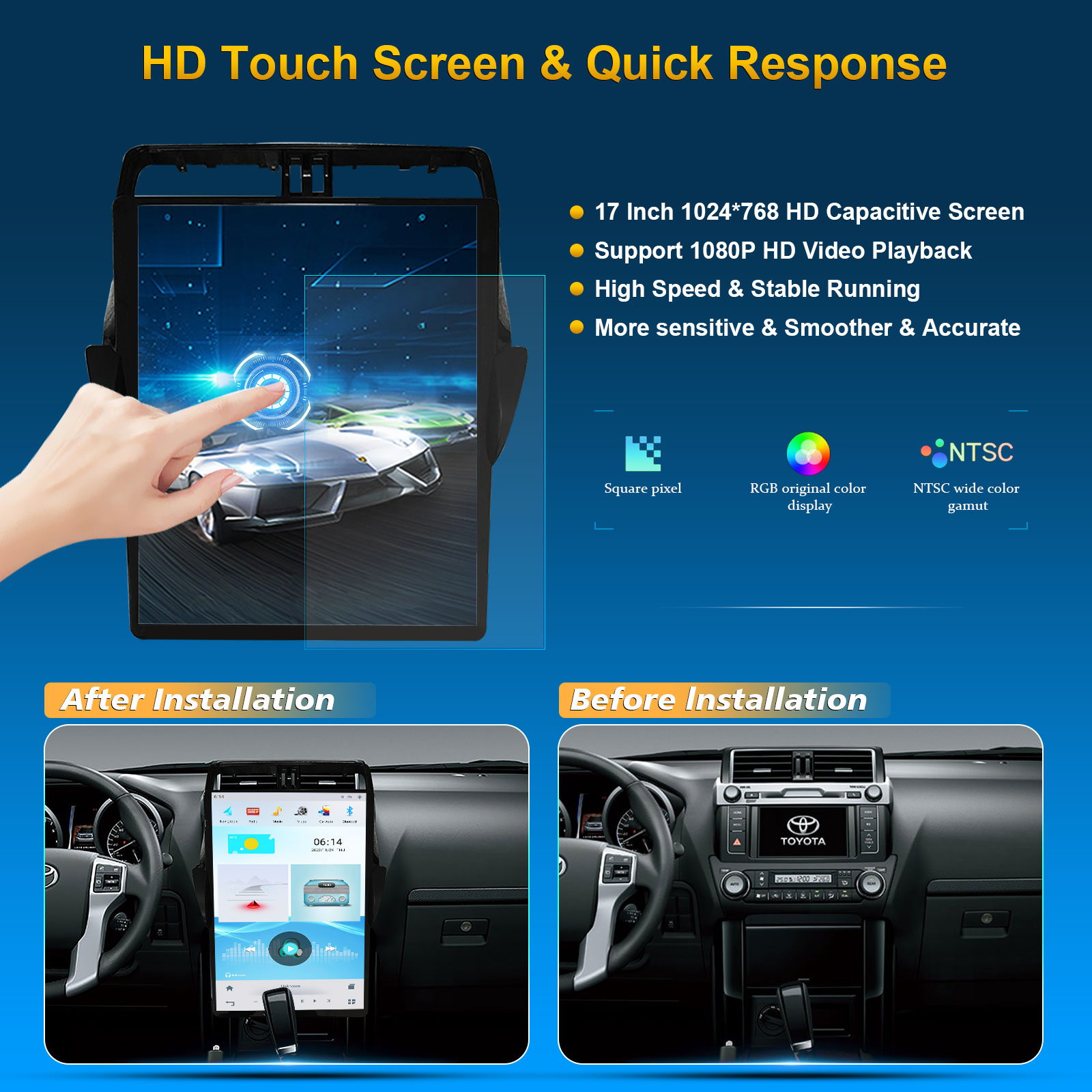 CUSP TOYOTA PRADO 2018- 17 Inch HD IPS Screen Android Car Stereo Radio GPS Navigation Multimedia Player Tablet Tesla Style Vertical Screen with Car Play and Android Auto, Bluetooth,FM,AM, RDS, GPS, WIFI, DSP, Audio, Video,Google, Youtube, Play Store, Netflix, Support Rear Camera,in Dash Kit