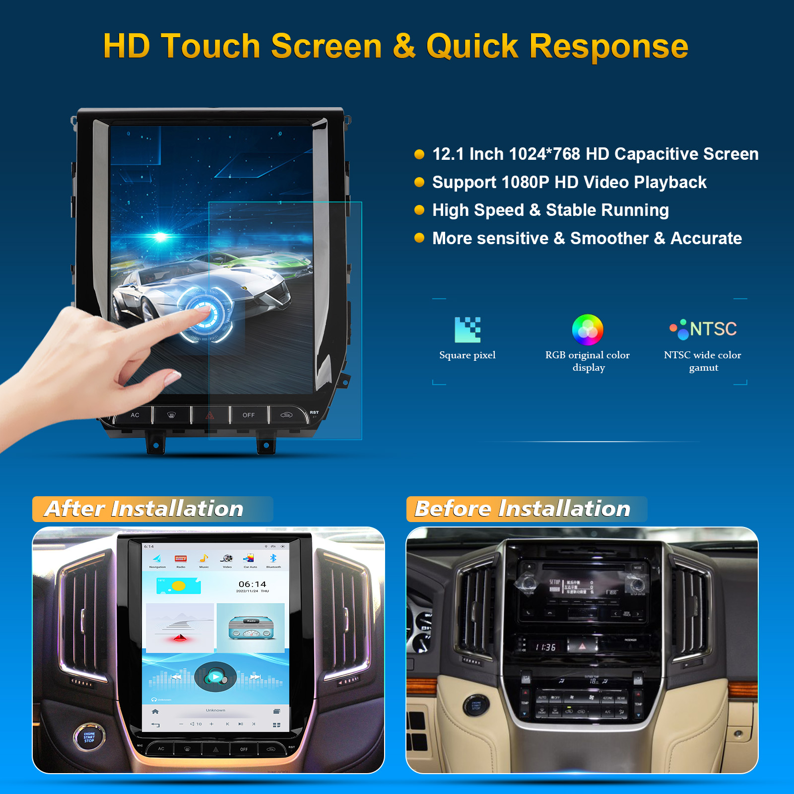 CUSP TOYOTA LAND CRUISER LC200 2016- GXR 12.1 Inch HD IPS Screen Android Car Stereo Radio GPS Navigation Multimedia Player Tablet Tesla Style Vertical Screen with Car Play and Android Auto, Bluetooth,FM,AM, RDS, GPS, WIFI, DSP, Audio, Video,Google, Youtube, Play Store, Netflix, Support Rear Camera,in Dash Kit