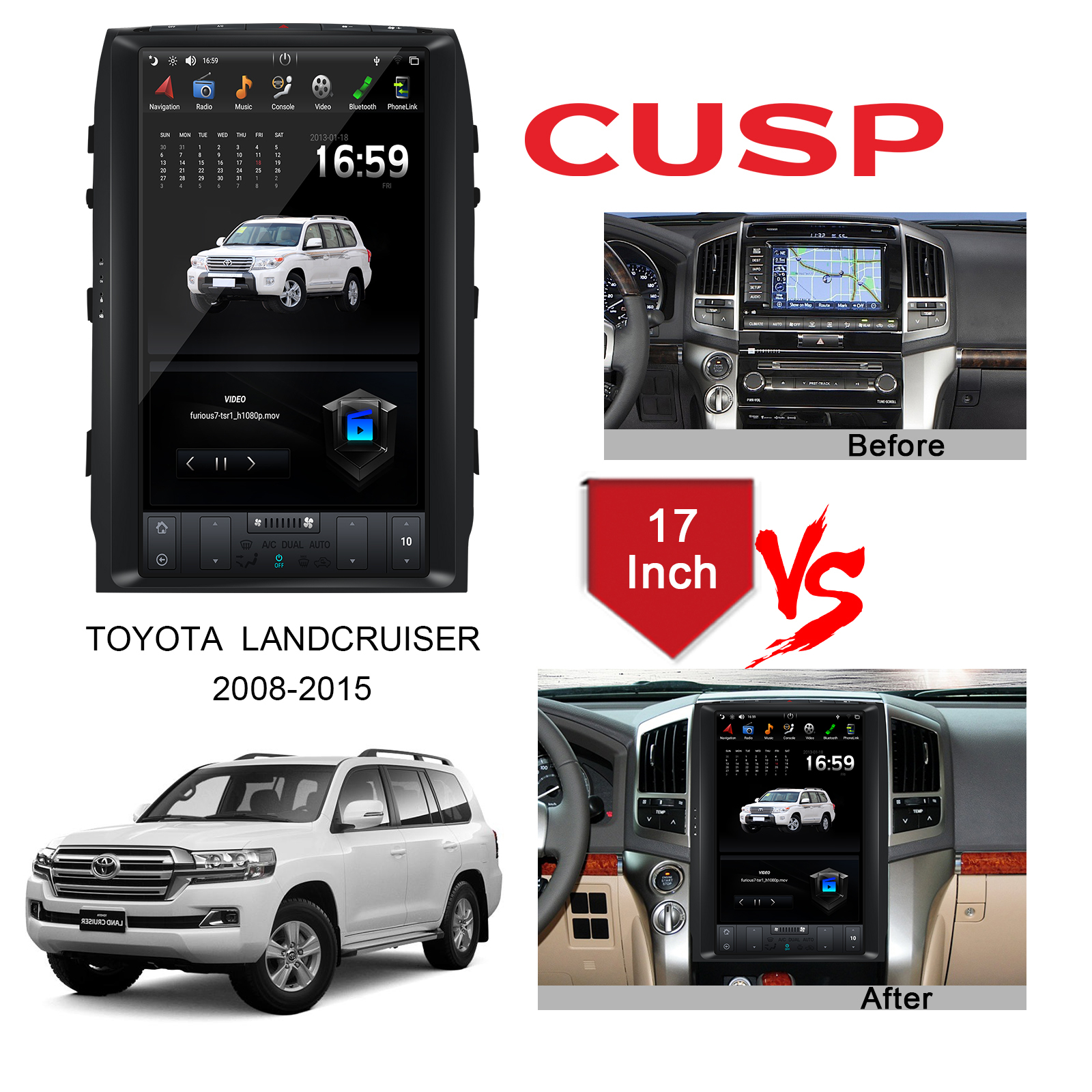 CUSP TOYOTA LAND CRUISER LC200 2008-2015 VXR high level 17 Inch HD IPS Screen Android Car Stereo Radio GPS Navigation Multimedia Player Tablet Tesla Style Vertical Screen with Car Play and Android Auto, Bluetooth,FM,AM, RDS, GPS, WIFI, DSP, Audio, Video,Google, Youtube, Play Store, Netflix, Support Rear Camera,in Dash Kit