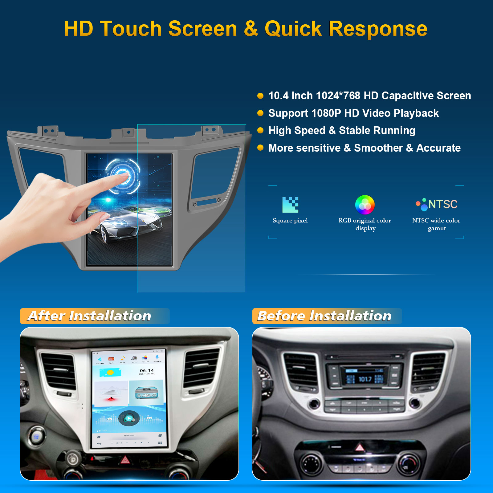 CUSP HYUNDAI TUCSON 2015- 10.4 Inch HD IPS Screen Android Car Stereo Radio GPS Navigation Multimedia Player Tablet Tesla Style Vertical Screen with Car Play and Android Auto, Bluetooth,FM,AM, RDS, GPS, WIFI, DSP, Audio, Video,Google, Youtube, Play Store, Netflix, Support Rear Camera,in Dash Kit