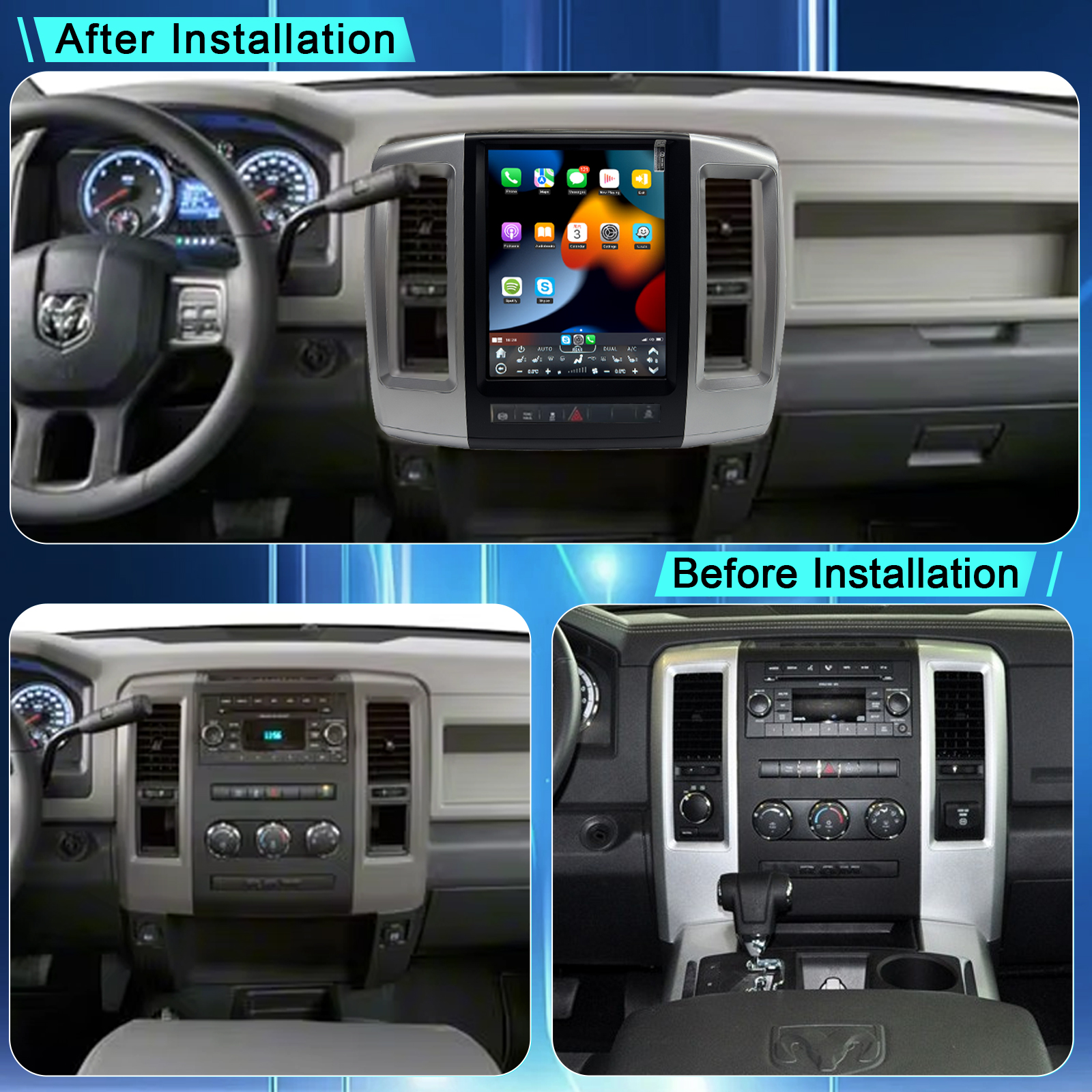 CUSP Dodge RAM Trucks pickup 1500 2500 3500 2009-2018 12.1 Inch HD IPS Screen Android Car Stereo Radio GPS Navigation Multimedia Player Tablet Tesla Style Vertical Screen with Car Play and Android Auto, Bluetooth,FM,AM, RDS, GPS, WIFI, DSP, Audio, Video,Google, Youtube, Play Store, Netflix, Support Rear Camera,in Dash Kit